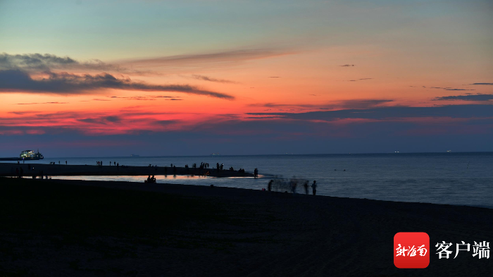 9月20日,市民游客在五源河海邊看晚霞。記者 陳衛東攝