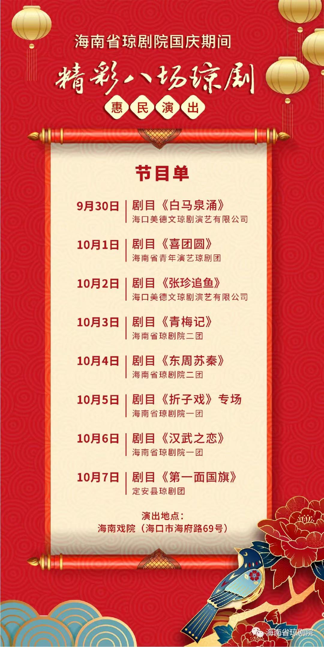 國慶期間8場瓊劇演出表。