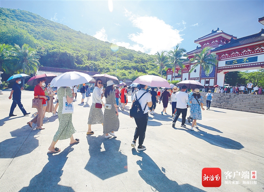近期,作為國內熱門旅游目的地的三亞,旅游市場回暖,游客回流,各景區游人紛至。圖為游客在三亞南山文化旅游區游覽。武昊 攝