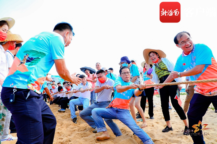 沙灘趣味運(yùn)動(dòng)會(huì)拔河項(xiàng)目比賽現(xiàn)場。