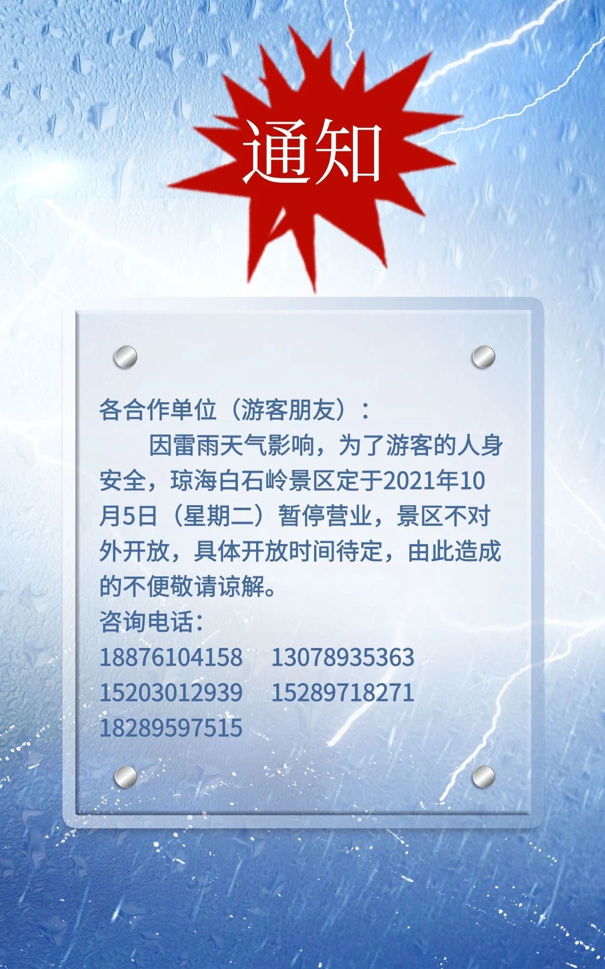 新海南客戶端、南海網、南國都市報10月5日消息(記者蘇桂除)10月5日,受天氣原因影響,瓊海市白石嶺旅游景區暫停營業,開放時間待定,詳情請撥打電話咨詢。