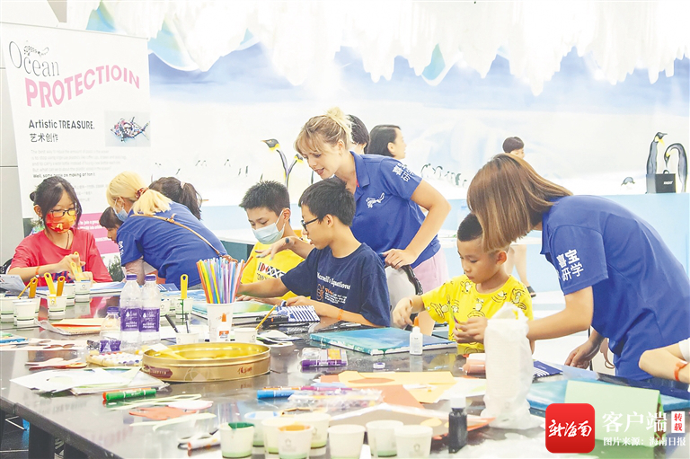 國慶假期,游客在大白鯨·三亞海洋探索世界參加海洋科學探索嘉年華活動。