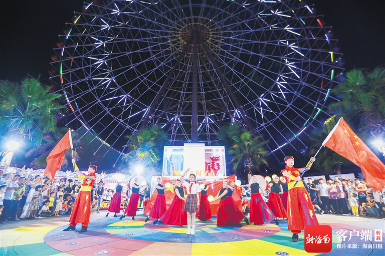 10月5日晚,三亞海昌夢幻海洋不夜城上演“國潮快閃”,吸引游客駐足觀看。隨著一首《萬疆》響起,演員們載歌載舞,鮮艷的五星紅旗迎風飄揚,全場游客齊聲共唱,用歌聲、掌聲、歡呼聲,為祖國獻上祝福。據悉,“國潮快閃”活動持續整個國慶假期,每天21點10分上演。此外,三亞海昌夢幻海洋不夜城還在節日期間推出“穿漢服免費打卡摩天輪”“兒童免費游”“國潮劇本殺”等主題活動。