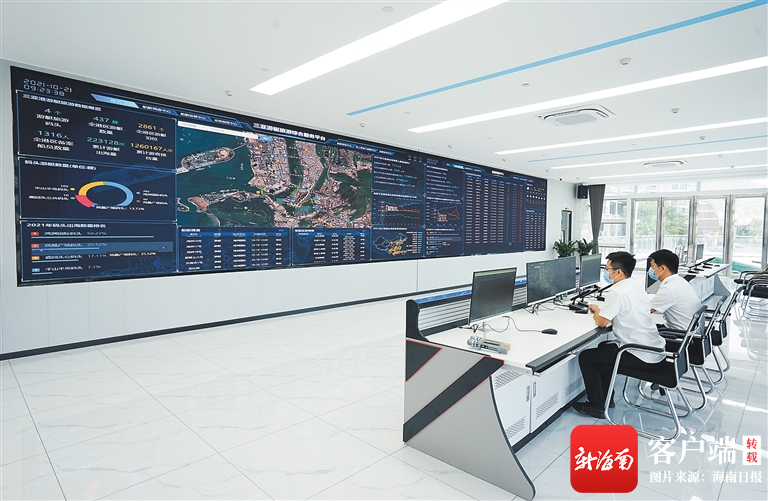 10月21日,工作人員在三亞游艇旅游綜合服務(wù)平臺(tái)指揮中心查看實(shí)時(shí)數(shù)據(jù)。記者 武威 攝