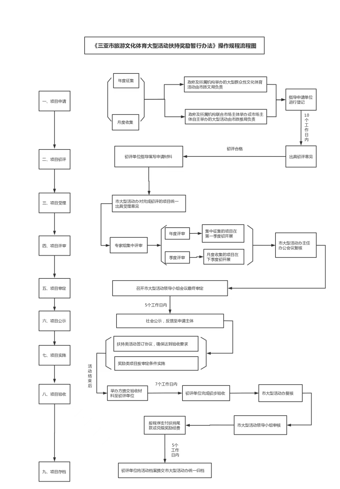 ?《三亞市旅游文化體育大型活動扶持獎勵暫行辦法》操作規(guī)程流程圖