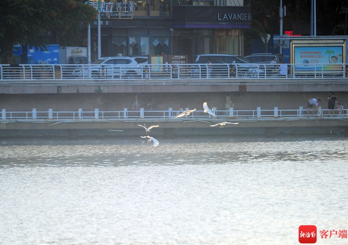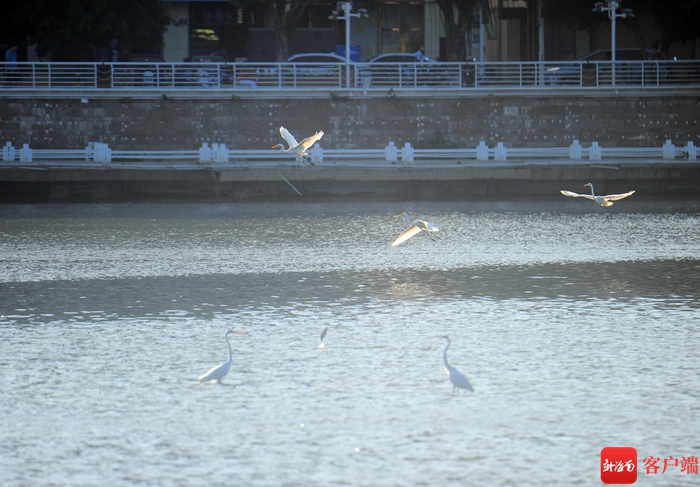 ?白鷺在三亞河飛舞嬉戲。記者 沙曉峰 攝