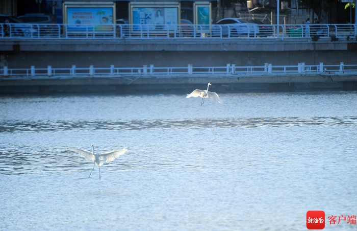 白鷺在三亞河飛舞嬉戲。記者 沙曉峰 攝