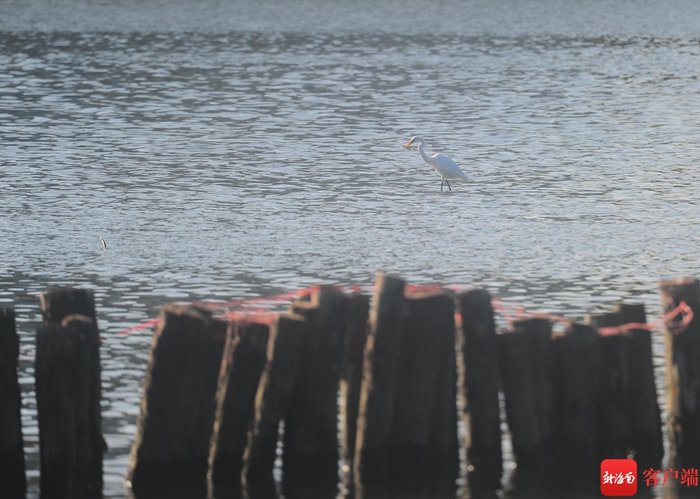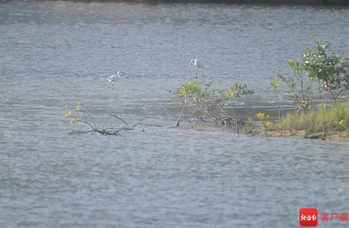 白鷺在三亞河覓食。記者 沙曉峰 攝