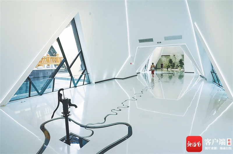 “您剛才看到的水中小島,是我們的植物中庭,可以把它看作一片微型的熱帶雨林,設計師意在給參觀者帶來一種理性自然森林的觀感,這處水簾模仿的是海南中部山區的瀑布。”該藝術館相關負責人王女士介紹,言·藝術館的設計融入了很多海南的特色元素,比如熱帶雨林、火山熔巖、飛瀑等。公司花重金打造這樣一座藝術館,是希望給市民提供一個與空間、時間、自我對話的地方。
