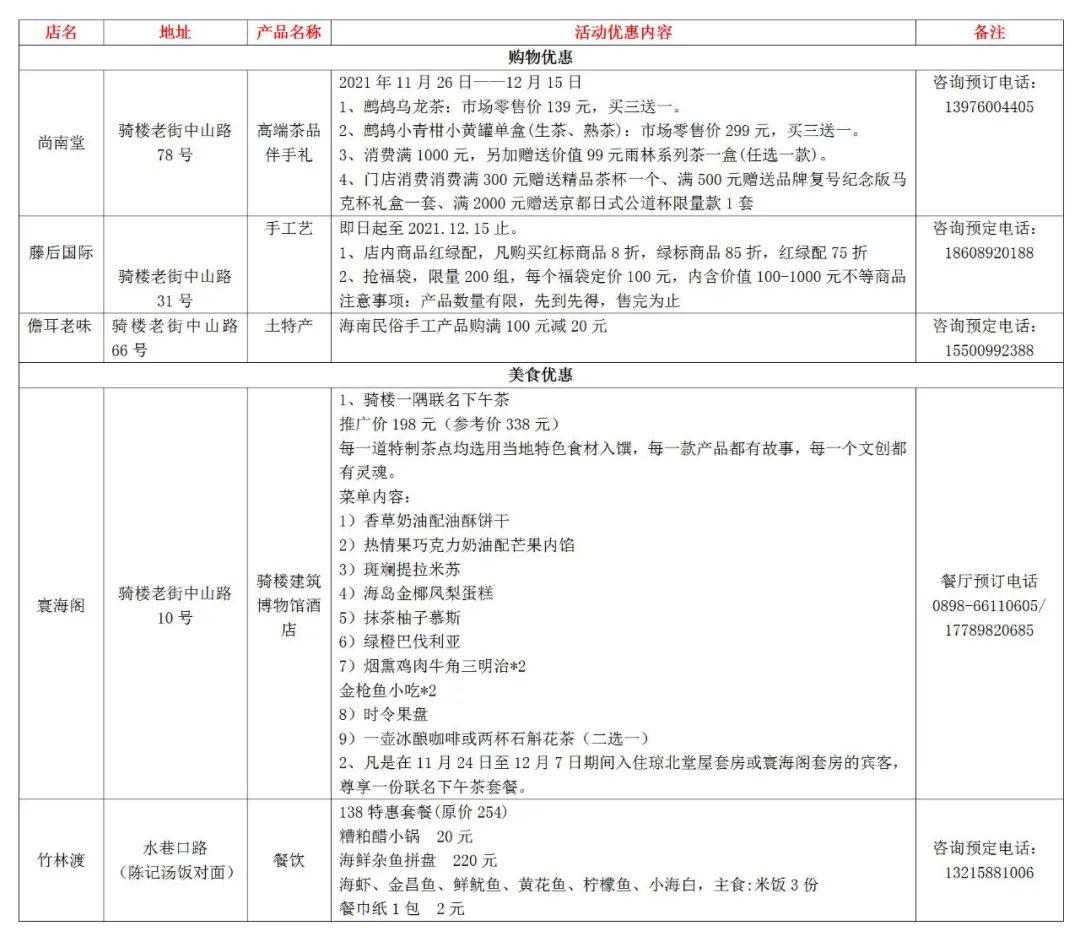 騎樓老街商家優(yōu)惠: