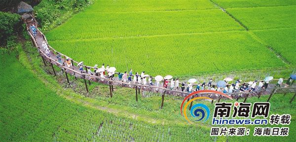 三亞南田鴻洲共享農莊股份有限公司還在農莊內打造了農田復耕試驗區,通過更換種植層土壤等技術對板結的荒地進行生態修復打造高標注農田,提升土壤肥力和保水能力,并邀請游客參與復耕插秧,讓他們在農事體驗中獲得自然教育。