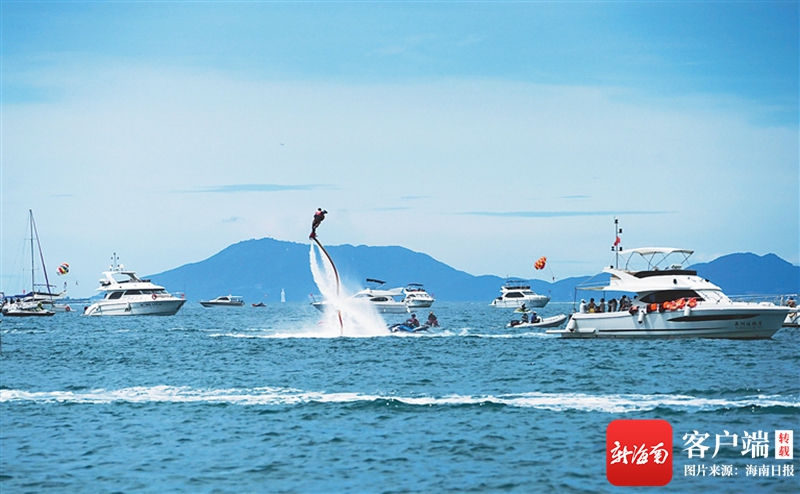 游客在三亞乘游艇出海,體驗海上運動。武昊 攝