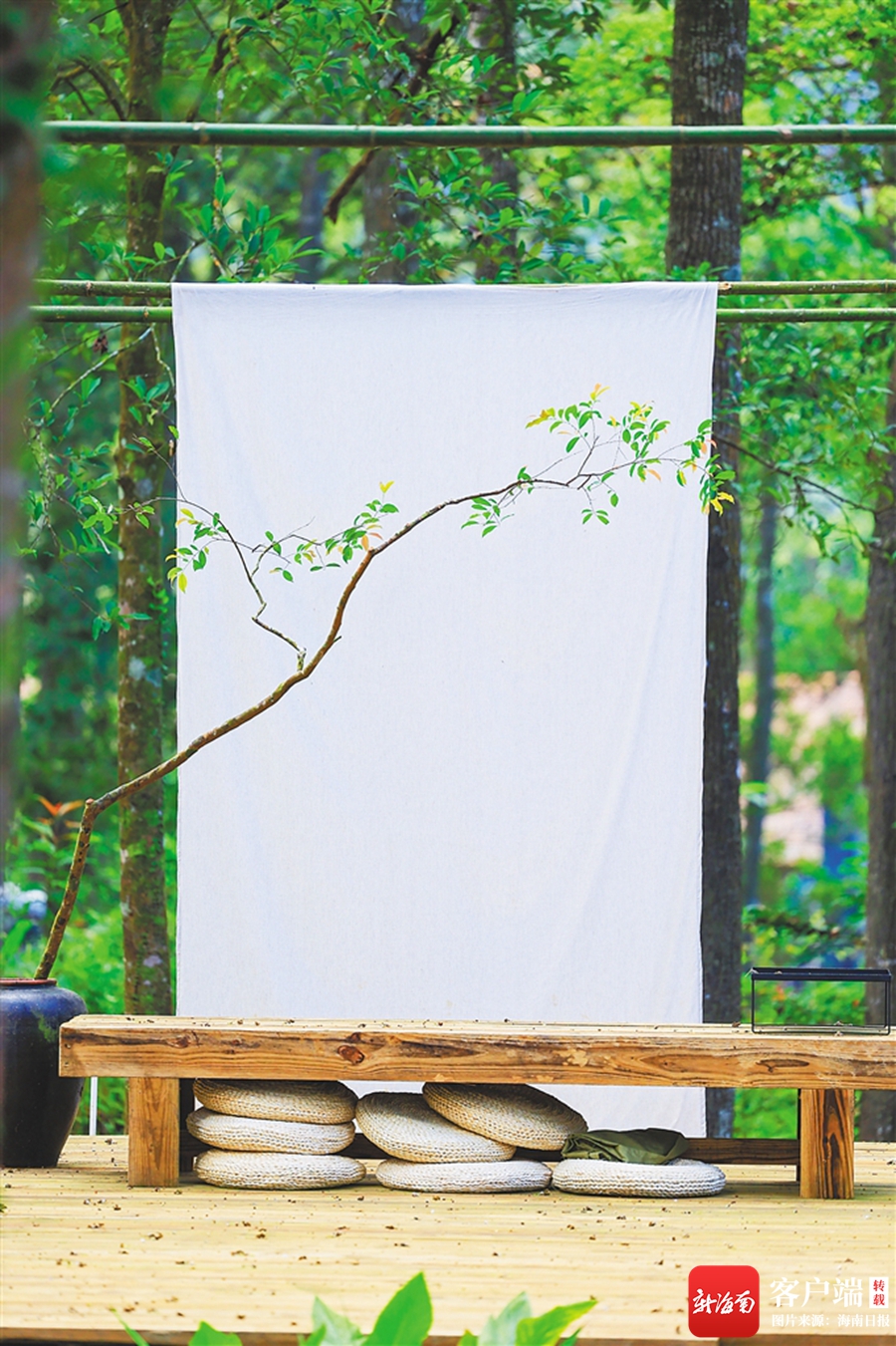 精心設計的茶臺與熱帶雨林融為一體。
