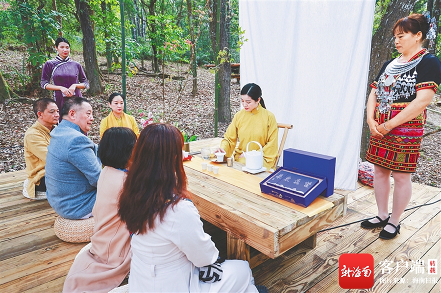 “這個環境布置得太美好了,好像進入了藝術的空間。”特意從海口趕來參加活動的游客潘少紅說。她端起茶杯輕品一口,被五指山紅茶的“琥珀湯、奶蜜香”典型特征所折服。