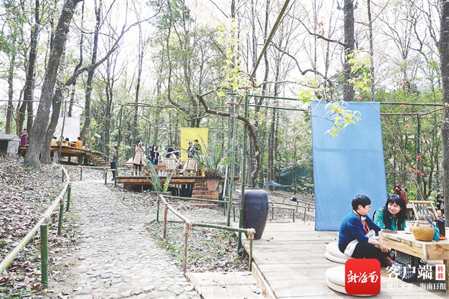 雨林主題茶臺上,每一個茶臺自帶不同風格和布景,環境與人文融為一體,體現著人與自然和諧共生的生態理念。現場景觀設計負責人陳奕同介紹。