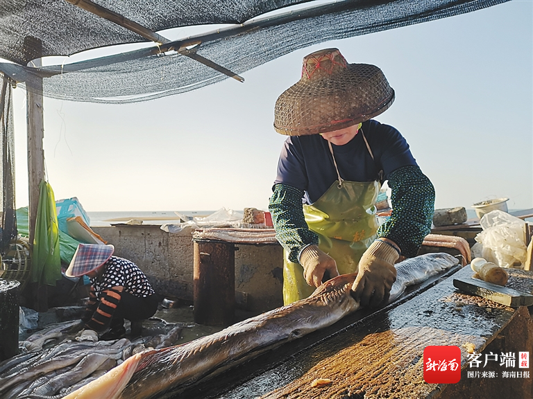 漁民在處理加工新鮮鰻魚。 海南日報(bào)記者 李夢瑤 攝