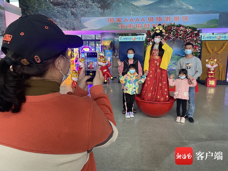 游客們在景區門口有序排隊掃碼,佩戴口罩,測量體溫,實名登記后才能進入景區。今年春節,銅鼓嶺景區推出“銅鼓迎春,虎運連連”2022新春嘉年華系列活動,營造歡樂的節慶氛圍。在景區游客中心,游客或在心愿墻前一手拿心愿卡,一手執筆,誠心寫下新年對家人朋友的祝福,許下新年美好的心愿;或在虎年新春網紅打卡點前,與家人朋友擺POSE拍照留影;或是與不倒翁小姐姐親密互動,到處充滿歡聲笑語。