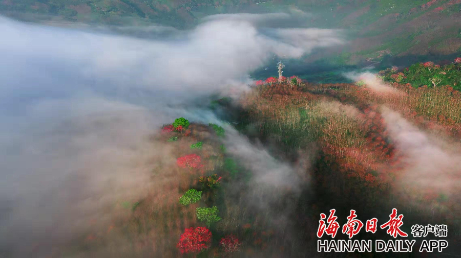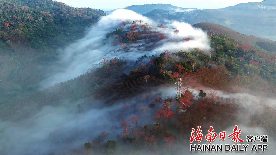近日,白沙九架嶺木棉花開紅艷艷,朵朵嬌艷似火的木棉花在枝頭綻放,和山野、梯田遙相呼應(yīng),構(gòu)成一幅美好的詩意風(fēng)景畫卷。