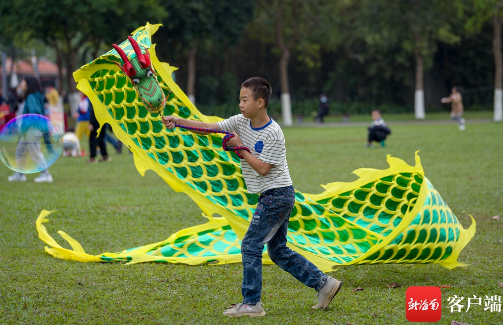 在海口市萬綠園,小朋友在放風(fēng)箏。記者 劉孫謀 攝