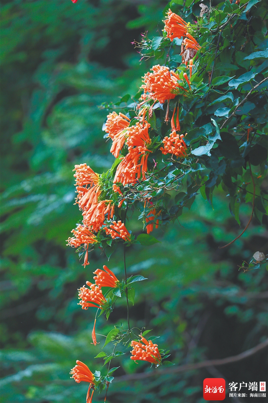 海口金牛嶺公園里的炮仗花。海南日?qǐng)?bào)記者 李天平 攝