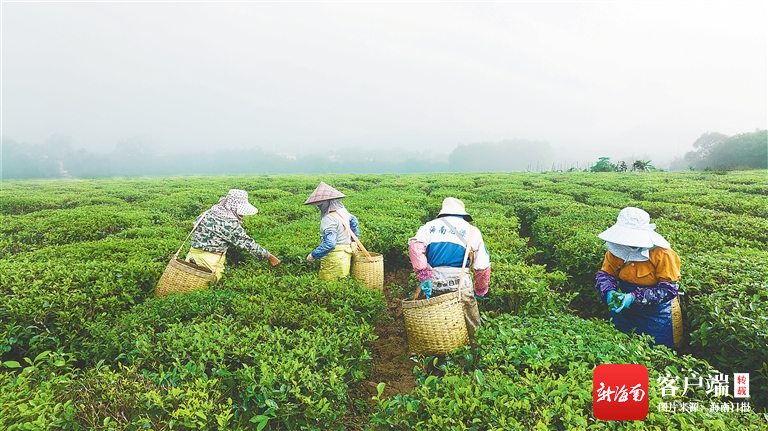 遠(yuǎn)眺漫山遍野的茶樹,瓊島茶葉已悄然萌發(fā)肥厚的枝芽。茶人們隨著時(shí)節(jié)而動(dòng),在嫻熟的技藝下,一縷縷天涯茶香裊然飄起。