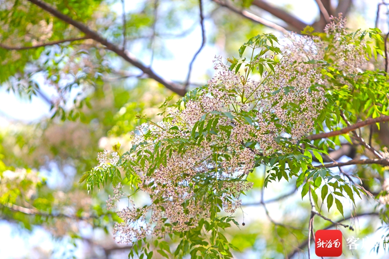 海口路旁,大樹開著白色小花。記者 汪承賢 攝