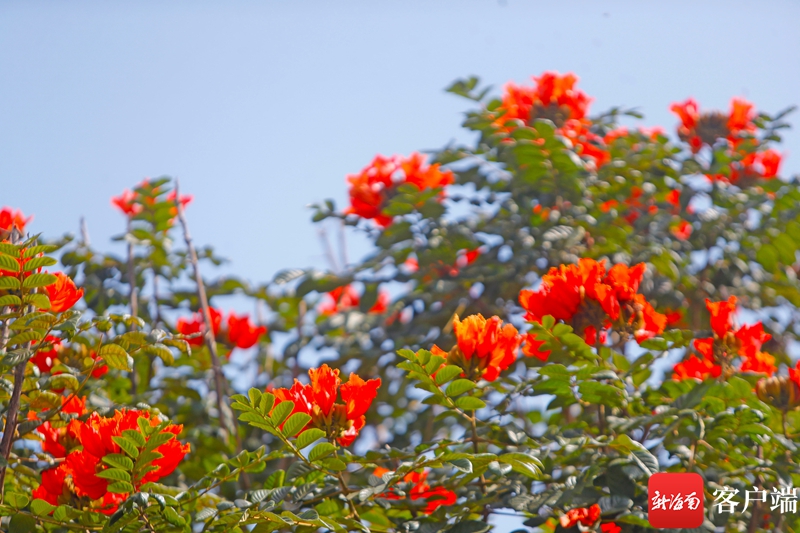 海口街頭隨處可見似火焰般的花兒。記者 汪承賢 攝