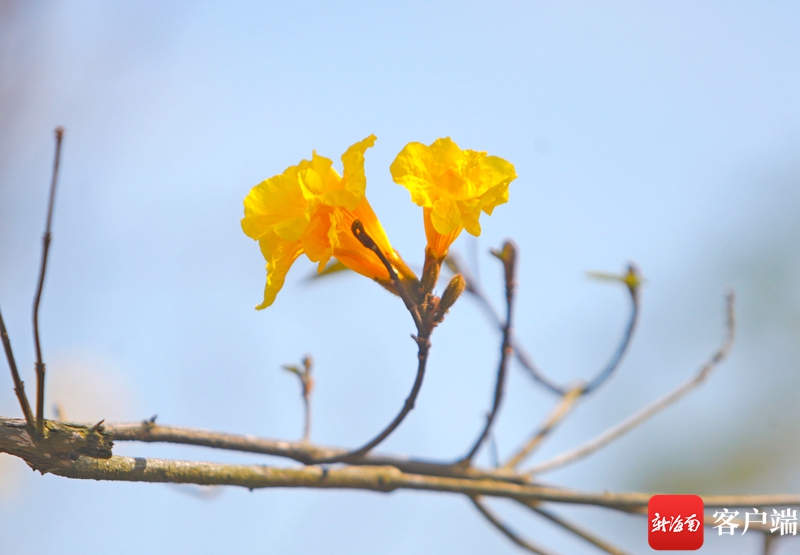 在西海岸一路旁,花冠呈漏斗形的黃花風(fēng)鈴按捺不住盛開。記者 汪承賢 攝
