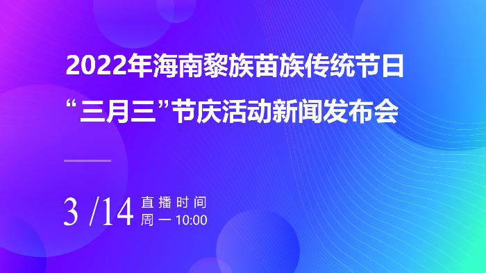 新海南客戶端、南海網、南國都市報3月14日消息(記者 鐘圓圓)3月14日, 2022年海南黎族苗族傳統節日“三月三”節慶活動新聞發布會在海口召開,記者從會上獲悉,系列活動將在4月啟幕,主會場設在樂東黎族自治縣和五指山市水滿鄉。