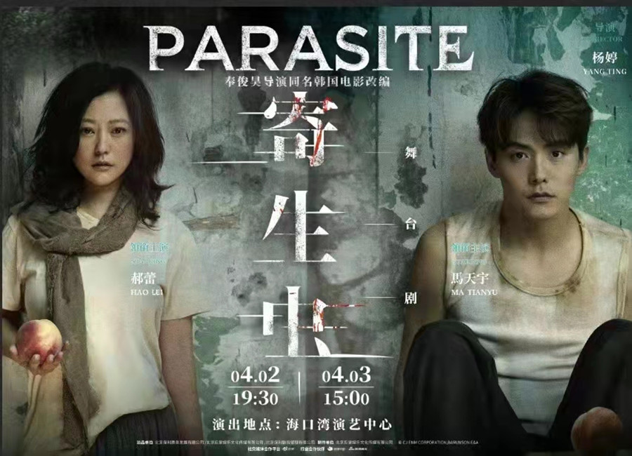 郝蕾、馬天宇主演舞臺(tái)劇版《寄生蟲》將于4月在海口上演。