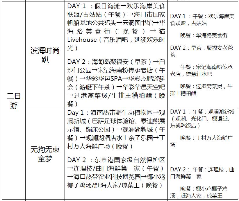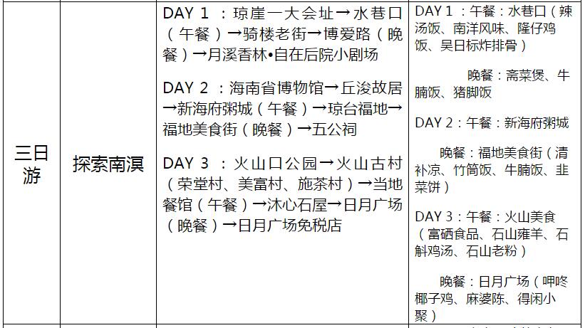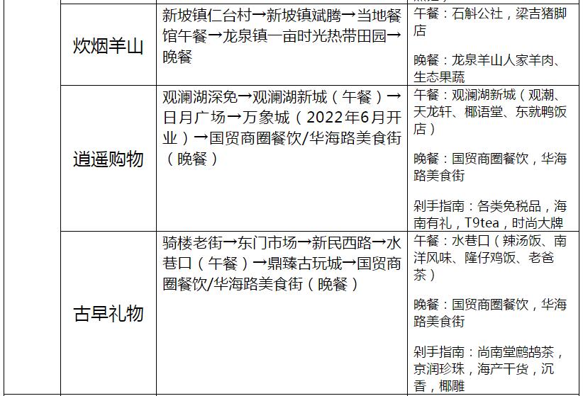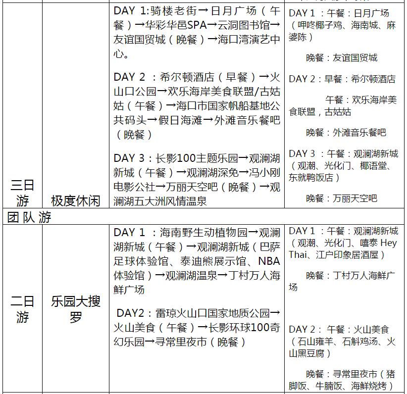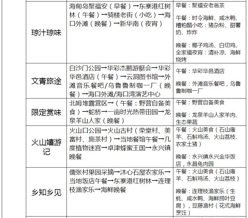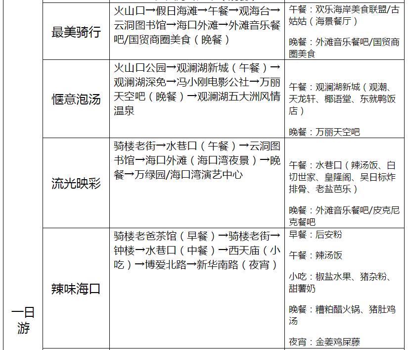 海口23條旅游線路產品信息一覽表