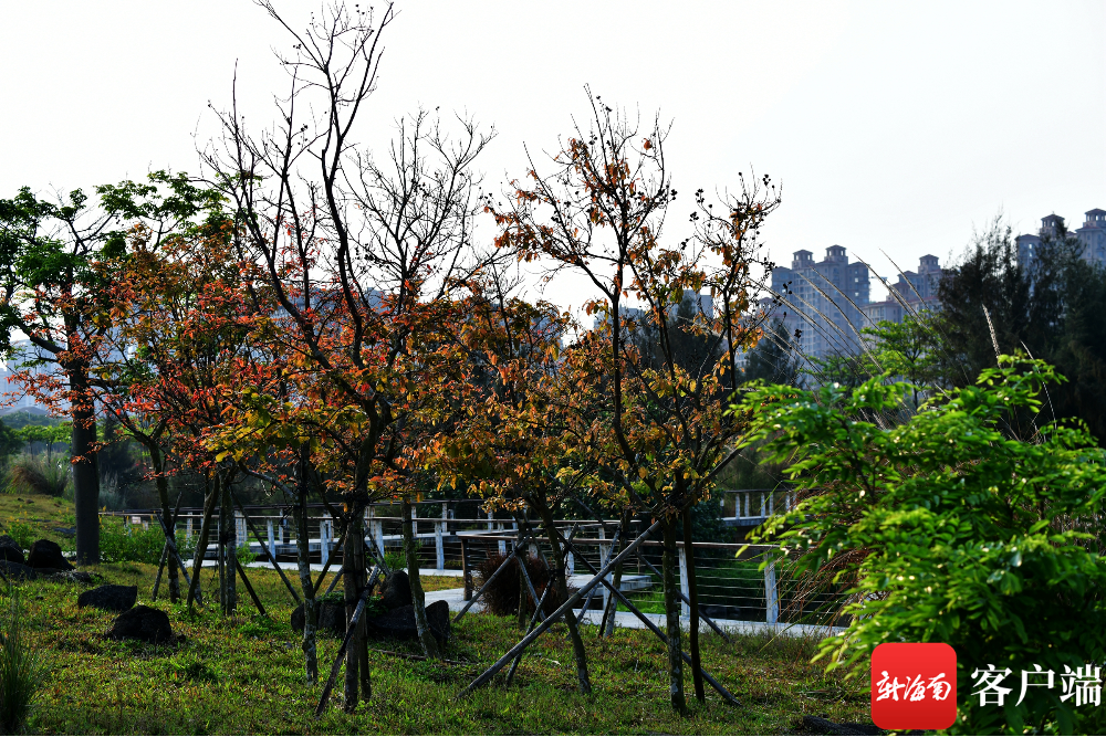 新海南客戶端、南海網、南國都市報4月8日消息(記者 陳衛東)春天,春暖花開,滿眼綠色。可是在海口五源河國家濕地公園,有一部分樹木的葉子是黃色和紅色的,非常漂亮。這種同日不同景的現象,讓人產生了“穿越”進秋天的感覺。