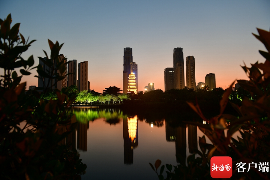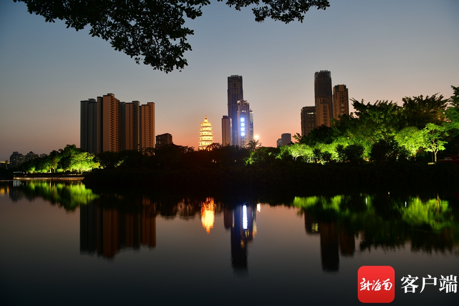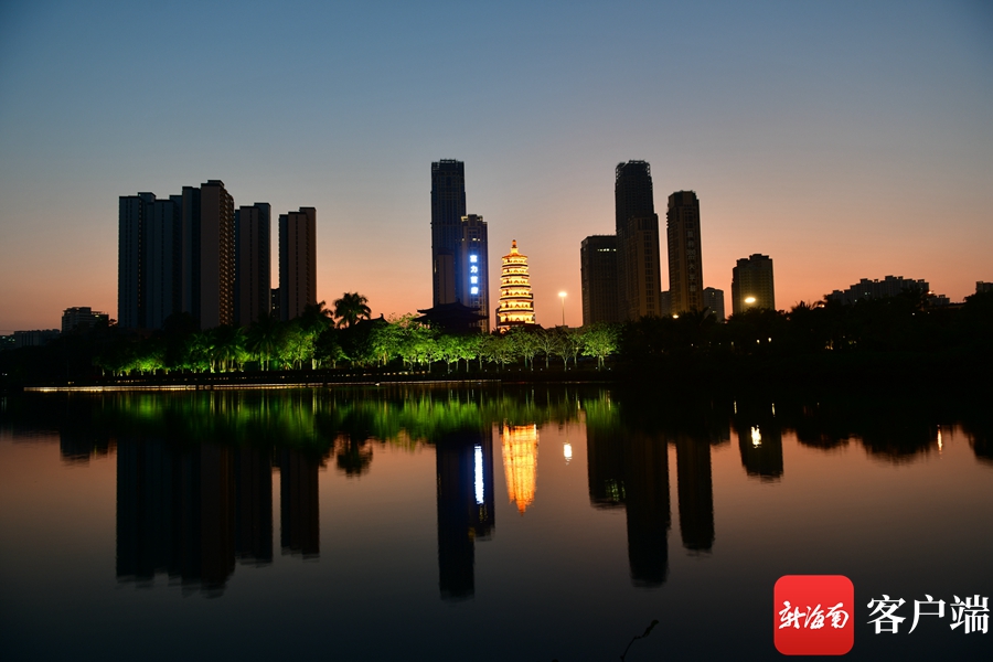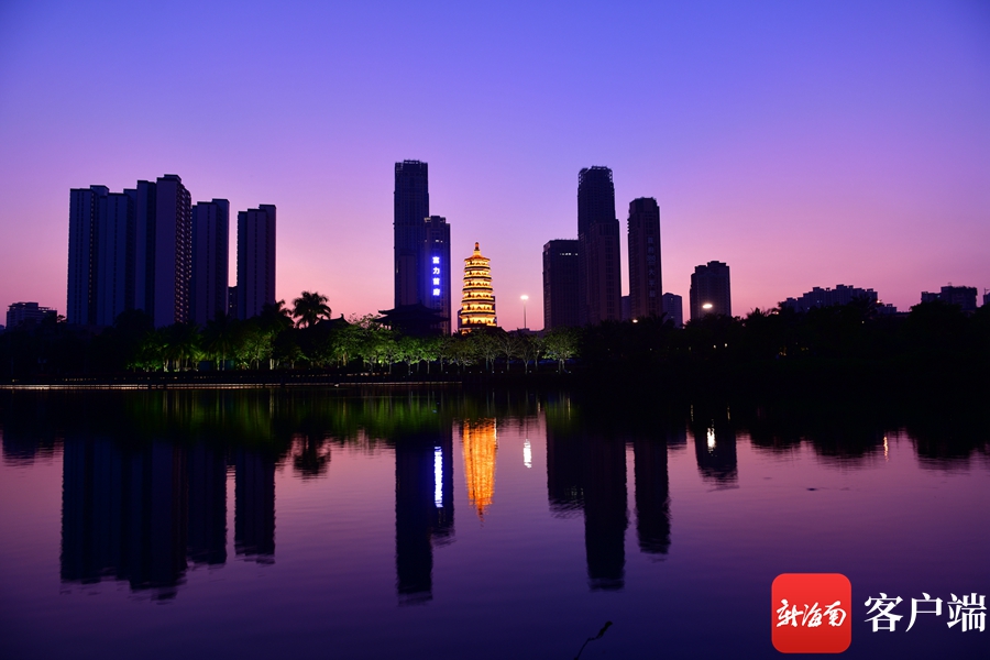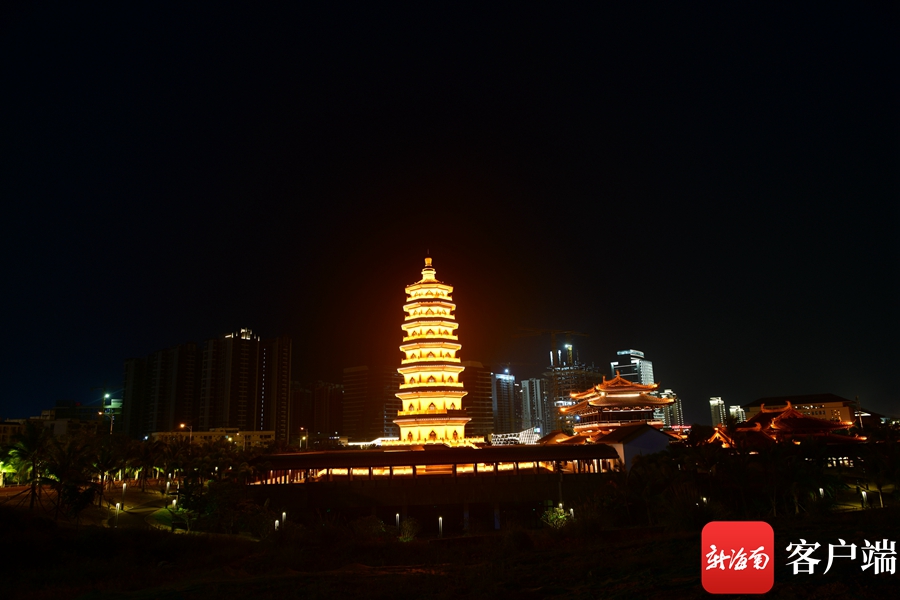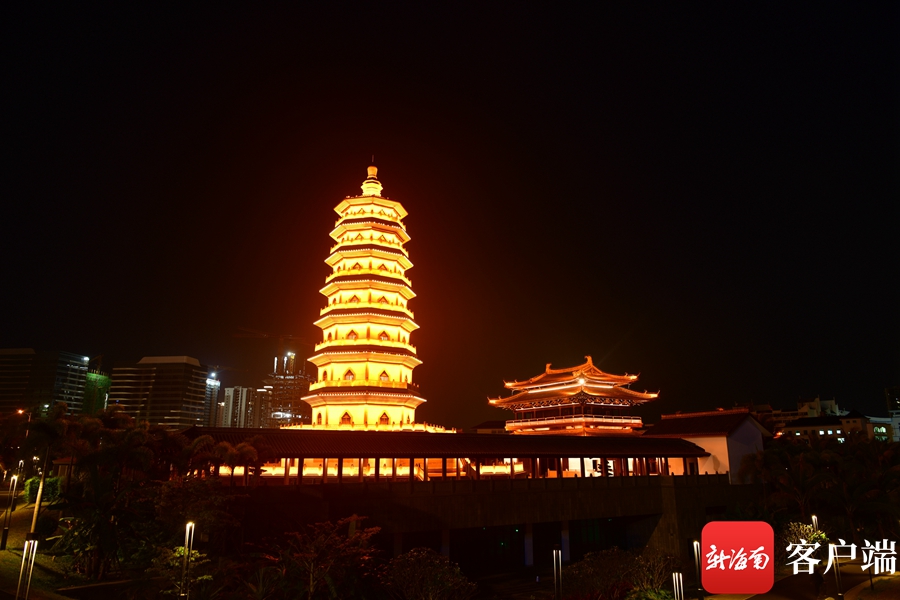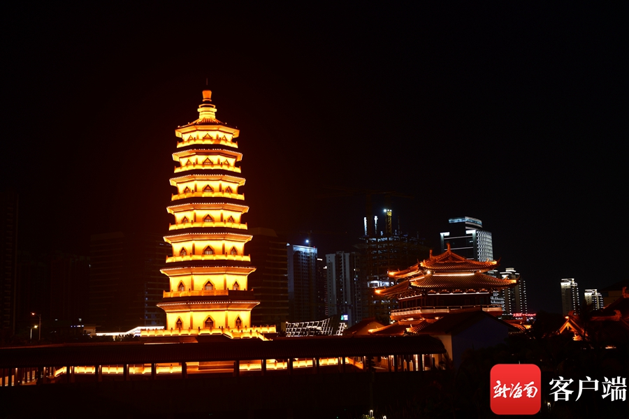 新海南客戶端、南海網、南國都市報4月10日消息 (記者 陳衛東)4月9日晚,記者拍到??诿鞑翢艉竺垒喢缞J的景觀,這座曾被譽為“瓊州第一塔”的明昌塔流光溢彩,為海口又增添一個網紅打卡地。