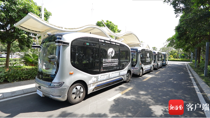 ?四種自動駕駛車輛共12臺,在博鰲東嶼島各自承擔著不同的使命,讓游客體驗到滿滿的科技感、未來感。記者 任桐攝