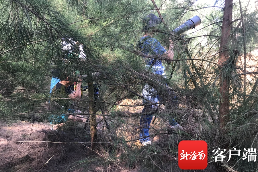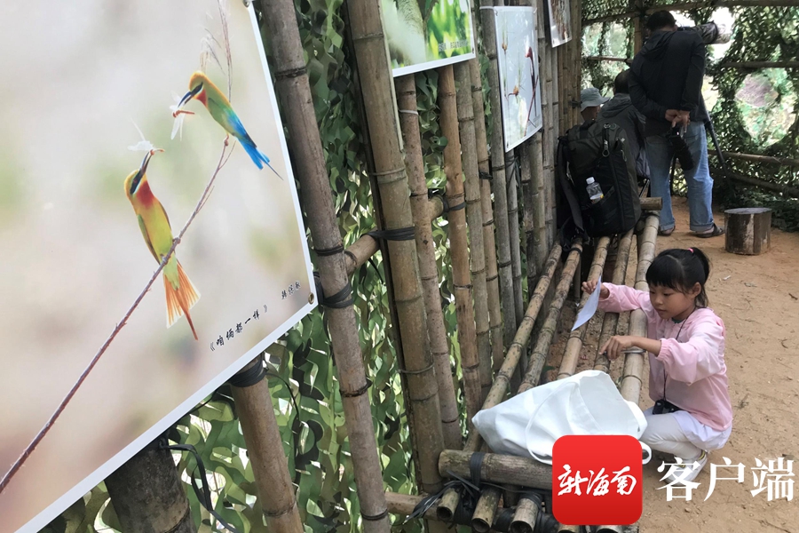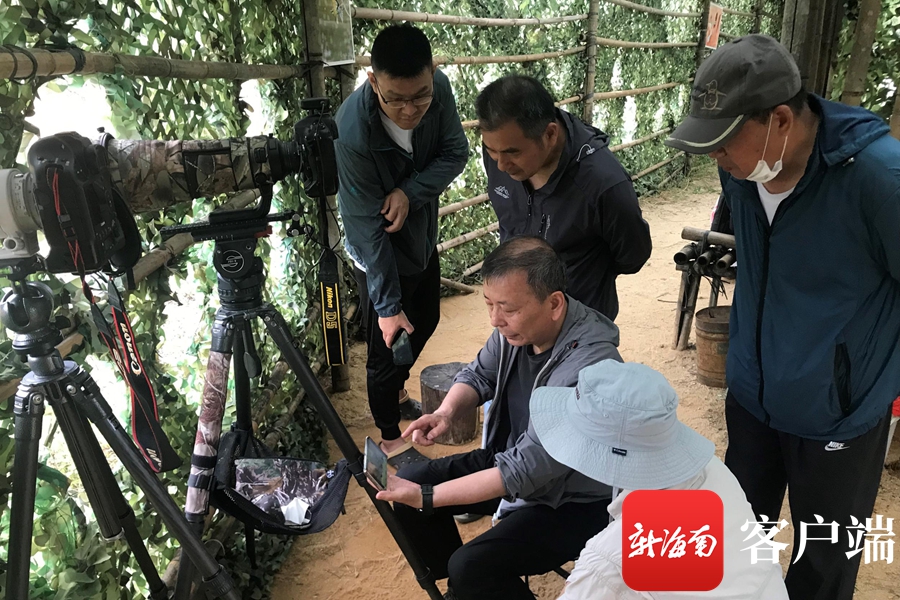 攝影師在樹叢中拍攝蜂虎。記者 陳衛東 攝