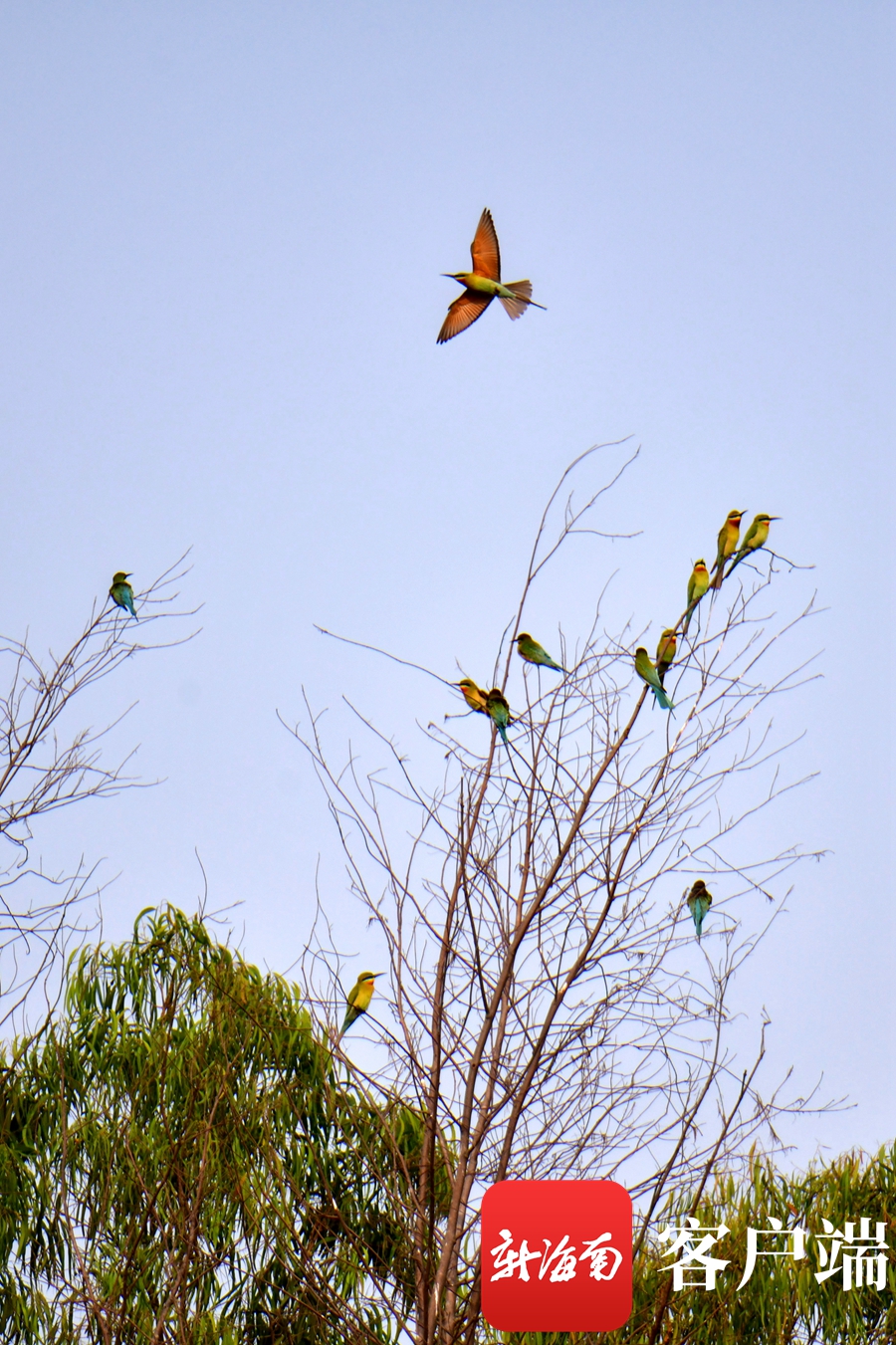 樹上棲息的蜂虎。記者 陳衛東 攝