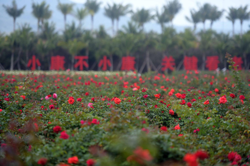 見(jiàn)到村民李玉梅時(shí),她正在亞龍灣玫瑰谷的花田忙碌,景區(qū)門口立起的大幅照片中,她是“主角”之一,站在習(xí)總書記身后笑得像花一般燦爛,“咱們的玫瑰花開(kāi)得好,我們的日子也越過(guò)越好了。”