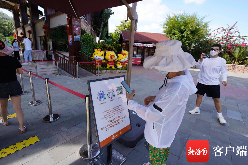 4月21日,游客在鹿回頭風景區掃描健康碼。