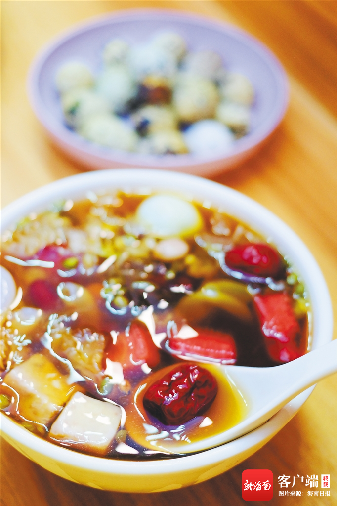海南人吃糖水,逐漸演化出不同追求,大暑節氣端上一碗綠豆湯,消熱解暑、利水祛濕;立秋時節吃一碗糖水面,潤肺生津、止咳平喘;冬日里熬一鍋黑芝麻糊,滋陰補腎、益氣提神……在這些看似平常的細節中,隱藏著海南人根深蒂固的生活哲學,依照四時節氣吃糖水,用不同的食材喚醒不同心境,從而達到調和陰陽、協調臟腑的目的。
