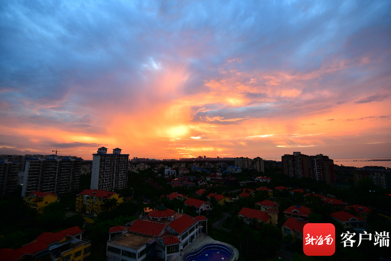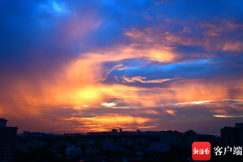 新海南客戶端、南海網(wǎng)、南國都市報5月11日消息 (記者 陳衛(wèi)東)11日傍晚,一陣小雨過后,海口天空出現(xiàn)火燒云景觀。