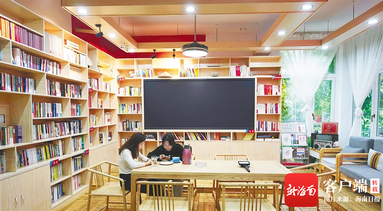?在臨高和新村“頭洋·海堂”漁耕文化鄉(xiāng)村旅游點(diǎn),游客在民宿書屋閱讀。海南日報(bào)記者 陳元才 攝