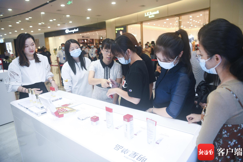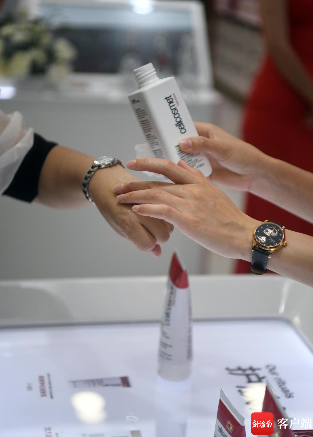 游客在三亞海旅免稅城試用護膚產品。記者 沙曉峰 攝