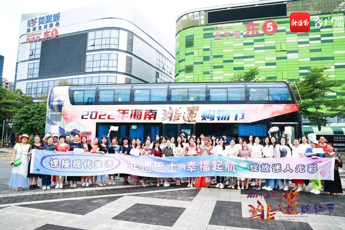 晚上活動(dòng)有亮點(diǎn),白天巡游更是精彩。6月11日上午,“非遺巴士”在日月廣場(chǎng)正式發(fā)車,這是今年非遺購物節(jié)的一大特色。巡游巴士進(jìn)行了整體包裝和創(chuàng)意設(shè)計(jì),車體設(shè)計(jì)融入海南非遺元素,體現(xiàn)海南非遺特色。同時(shí),巴士司機(jī)及工作人員身著黎錦服飾,帶領(lǐng)市民及游客開啟一段與眾不同的非遺之旅,成為海南“非遺購物節(jié)”期間一道靚麗的移動(dòng)風(fēng)景線。