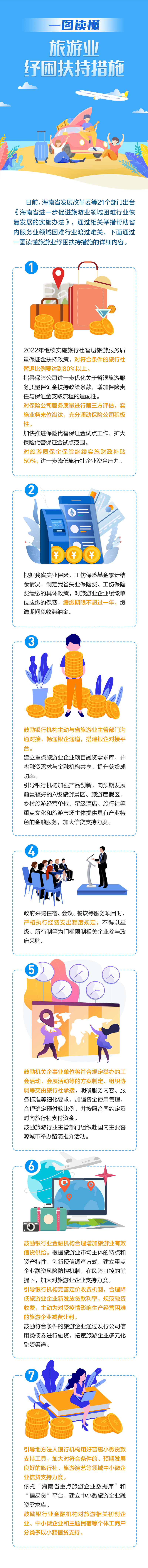 日前,海南省發展改革委等21個部門出臺《海南省進一步促進服務業領域困難行業恢復發展的實施辦法》,通過相關舉措幫助省內服務業領域困難行業渡過難關,下面通過一圖讀懂旅游業紓困扶持措施的詳細內容。