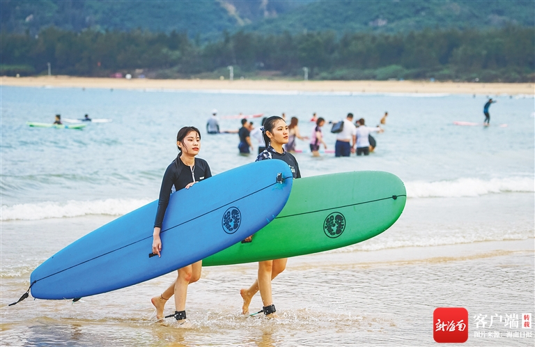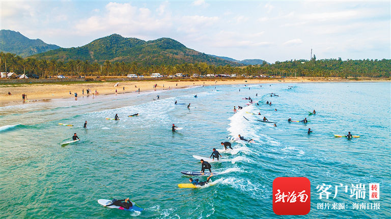 萬寧日月灣游客沖浪,近年來沖浪成為萬寧旅游新名片。阮琛 攝