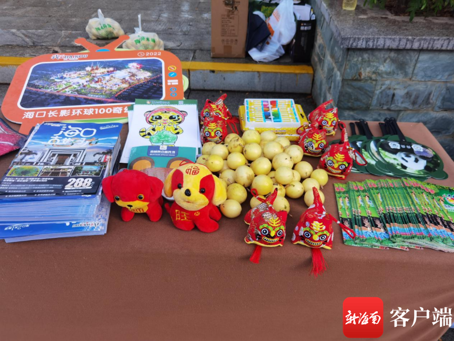 活動現(xiàn)場給市民游客準備禮品。海口市旅行社協(xié)會供圖