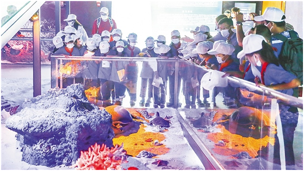 ?↑在海南省博物館,青少年參觀水下考古物件。海南日報記者 張茂 攝
