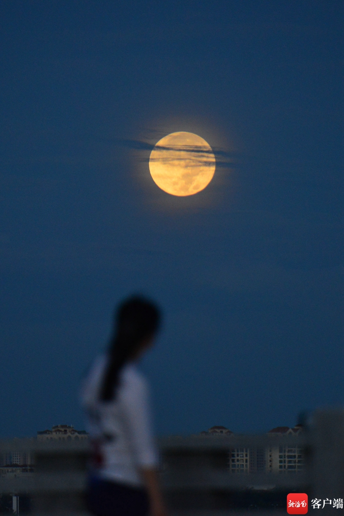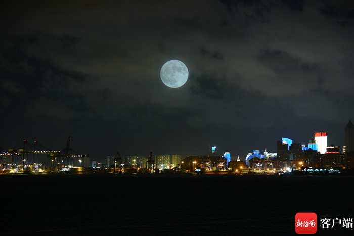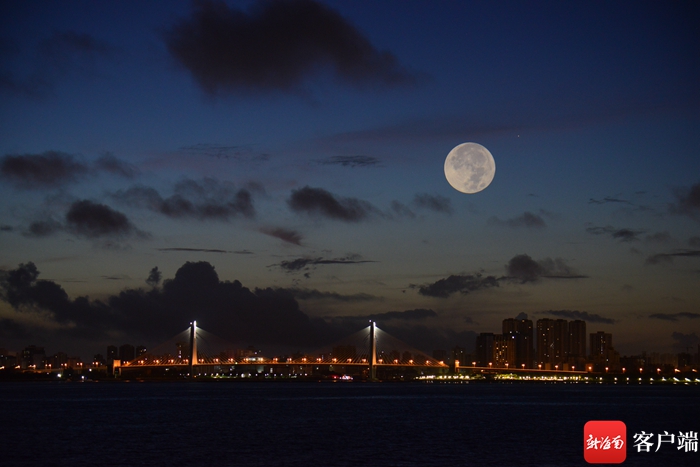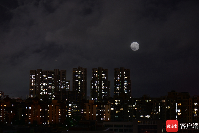 13日晚,海口天空上的超級月亮。記者 陳衛東 攝