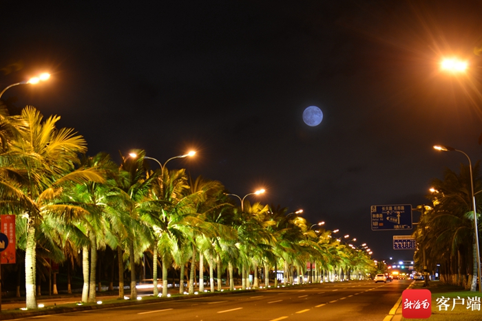 13日晚,海口天空的超級月亮。記者 陳衛東 攝