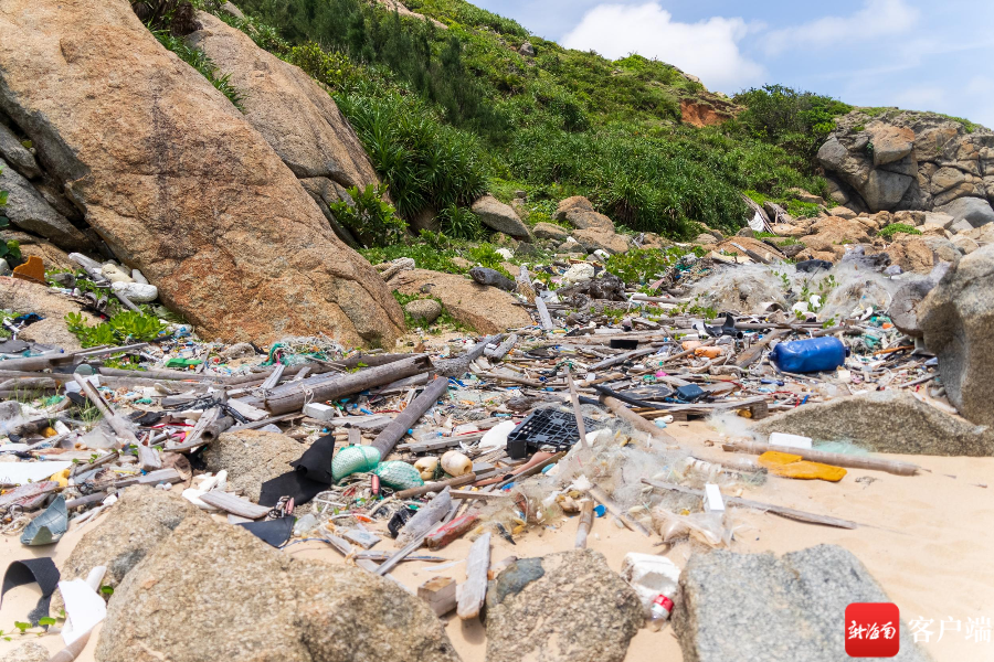 文昌銅鼓嶺鱷魚嘴海邊,垃圾四處散落。記者 曹志 攝
